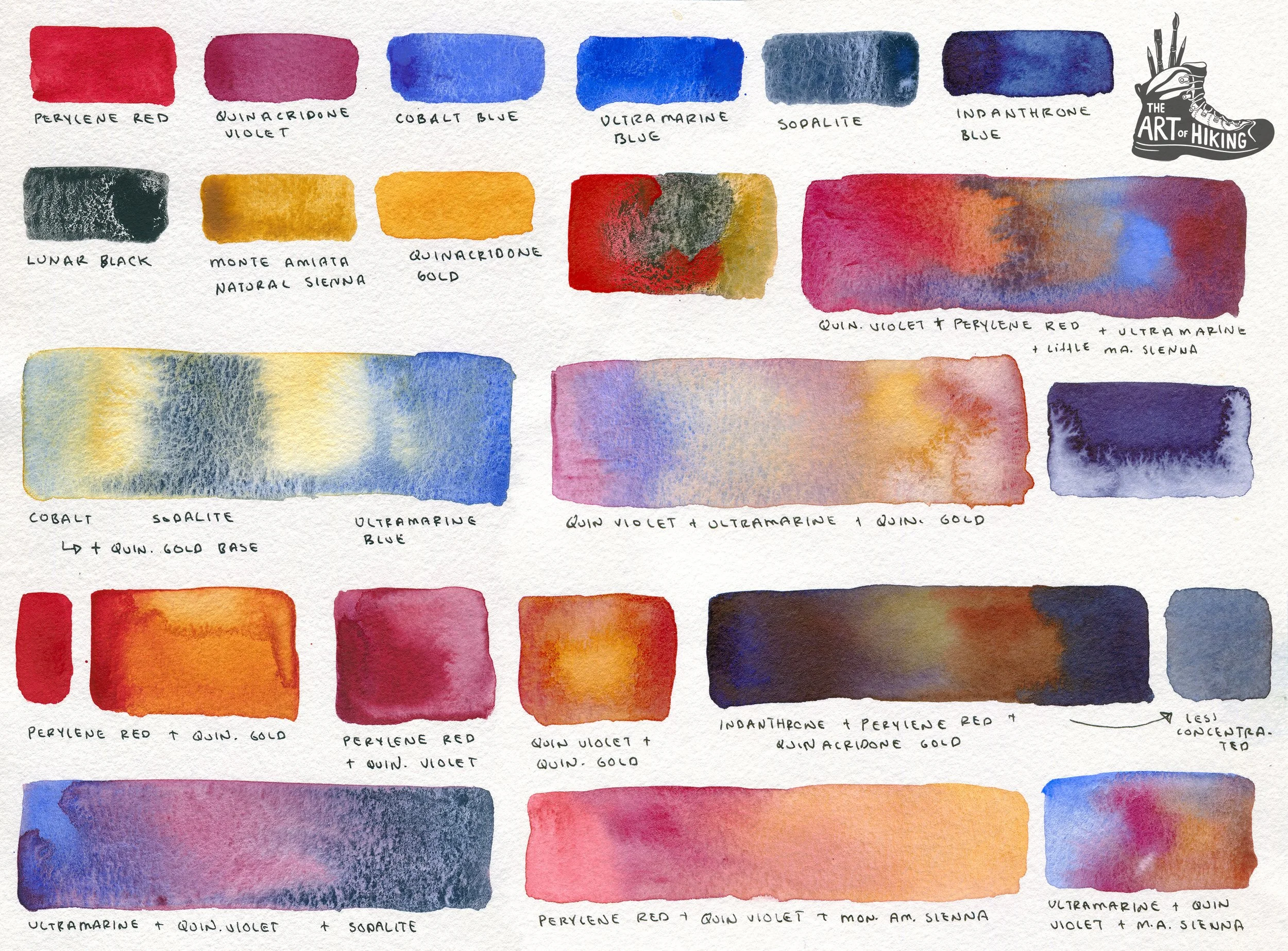 Monte Amiata Natural Sienna- at first I didn’t like this color as much, but as soon as I tried it in these paintings it was a perfect addition. It is a bit more opaque than quinacridone gold, and it also made less orange-y mixtures than the gold as well. It ended up being my go-to for combinations with the perylene red if I wanted a more red-orange without making a color that would take over the whole painting.